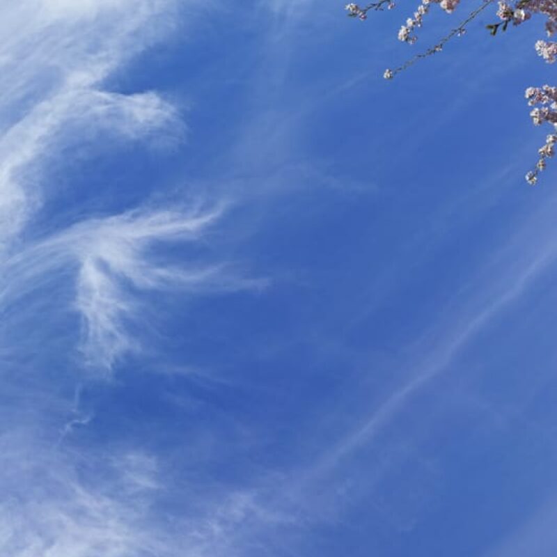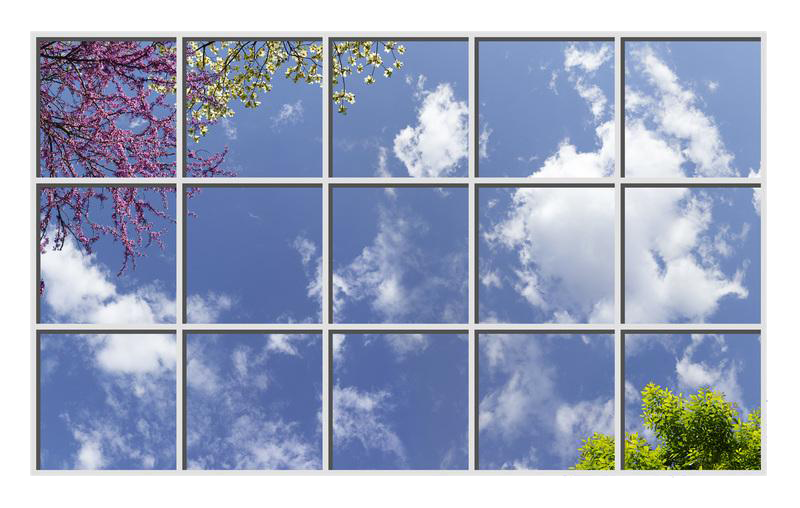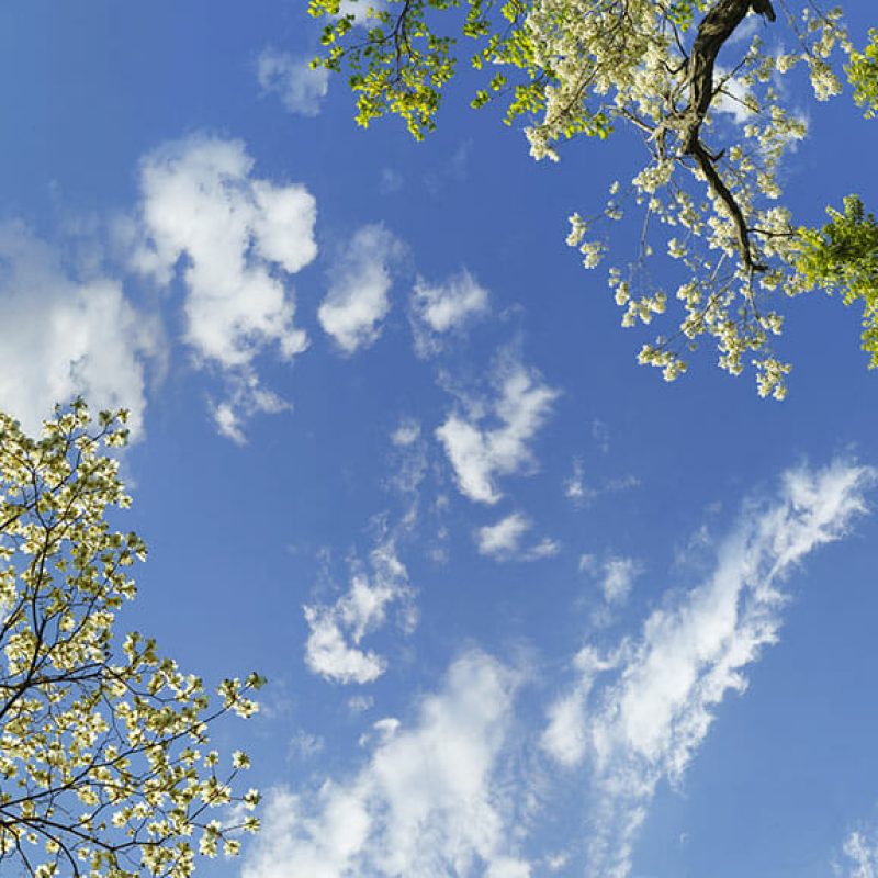Sky Factory Virtual SkyCeiling Master Image 6av01 Featuring Puffy White Cumulus Clouds and Spring Blossoms and Foliage.