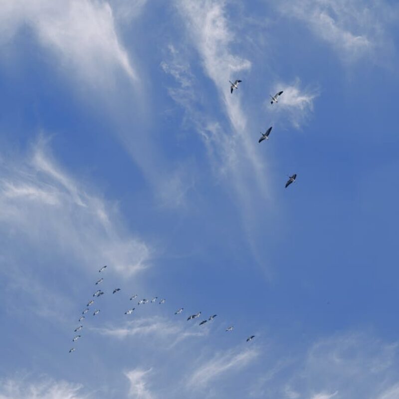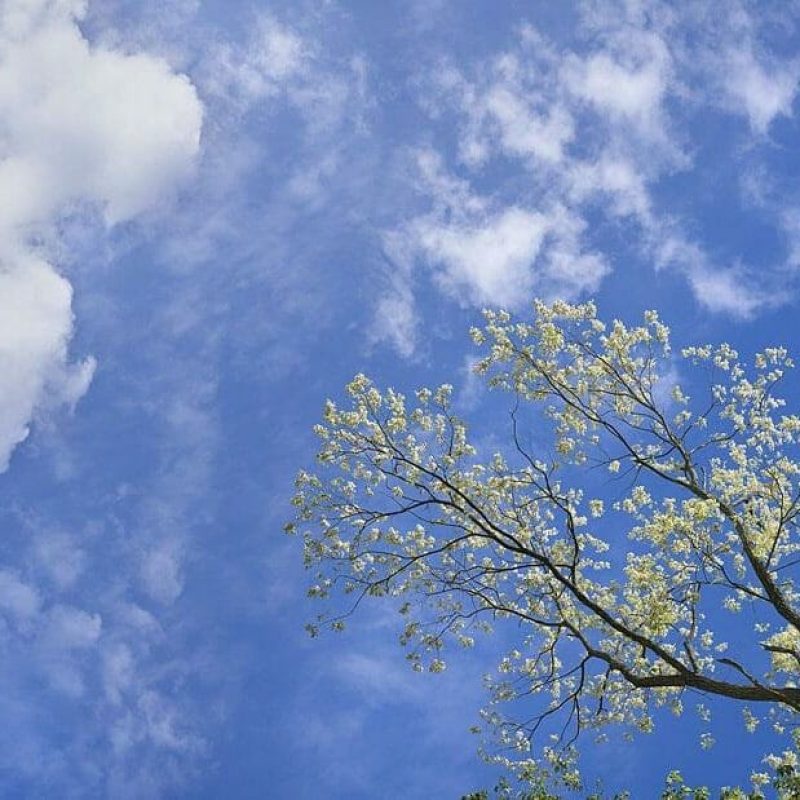 Blossoming Spring Trees, High Altitude - Cirrus Clouds