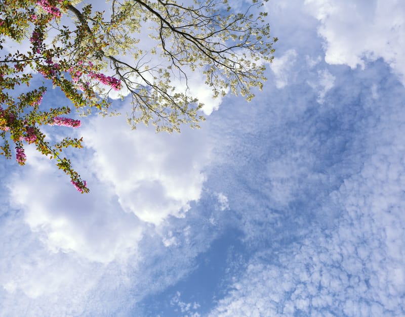 Layered Clouds, Blossoming Spring Trees