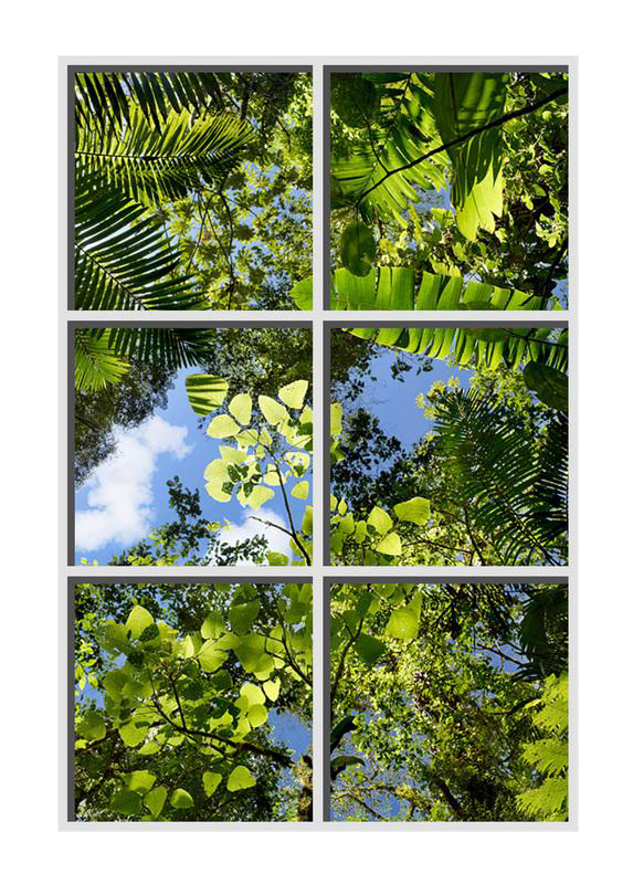 Sky Factory Virtual SkyCeiling Master Image 6th Featuring Puffy White Cumulus Clouds and Palms and Tropical Trees.