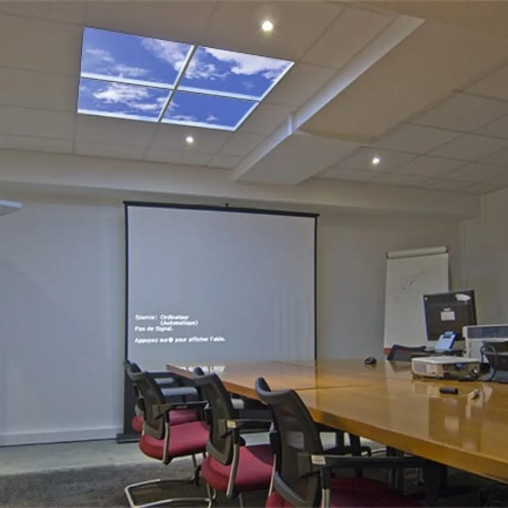 Elko Ingénierie is a construction engineering firm located just outside of Paris, France. In an effort to make the below-grade offices a little brighter and more comfortable, the firm installed several Classic Luminous SkyCeilings. The virtual skylights provide a very realistic presence of overhead sky. Biophilic elements, such as these illusions of real sky, have proven to promote relaxation and comfort.
