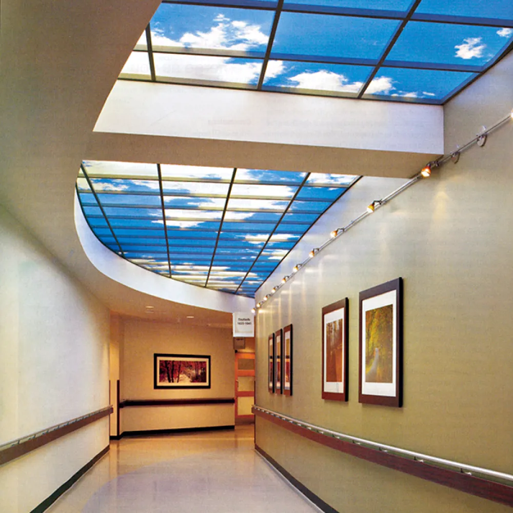 The Capital Region Medical Center in Jefferson City, MO, feature an 8’ X 8’ Revelation SkyCeiling in their LINAC suite. The Luminous SkyCeiling shows a split 4’ X 8’ skylight that provides patients with maximum visibility around the Varian Truebeam Linear Accelerator.